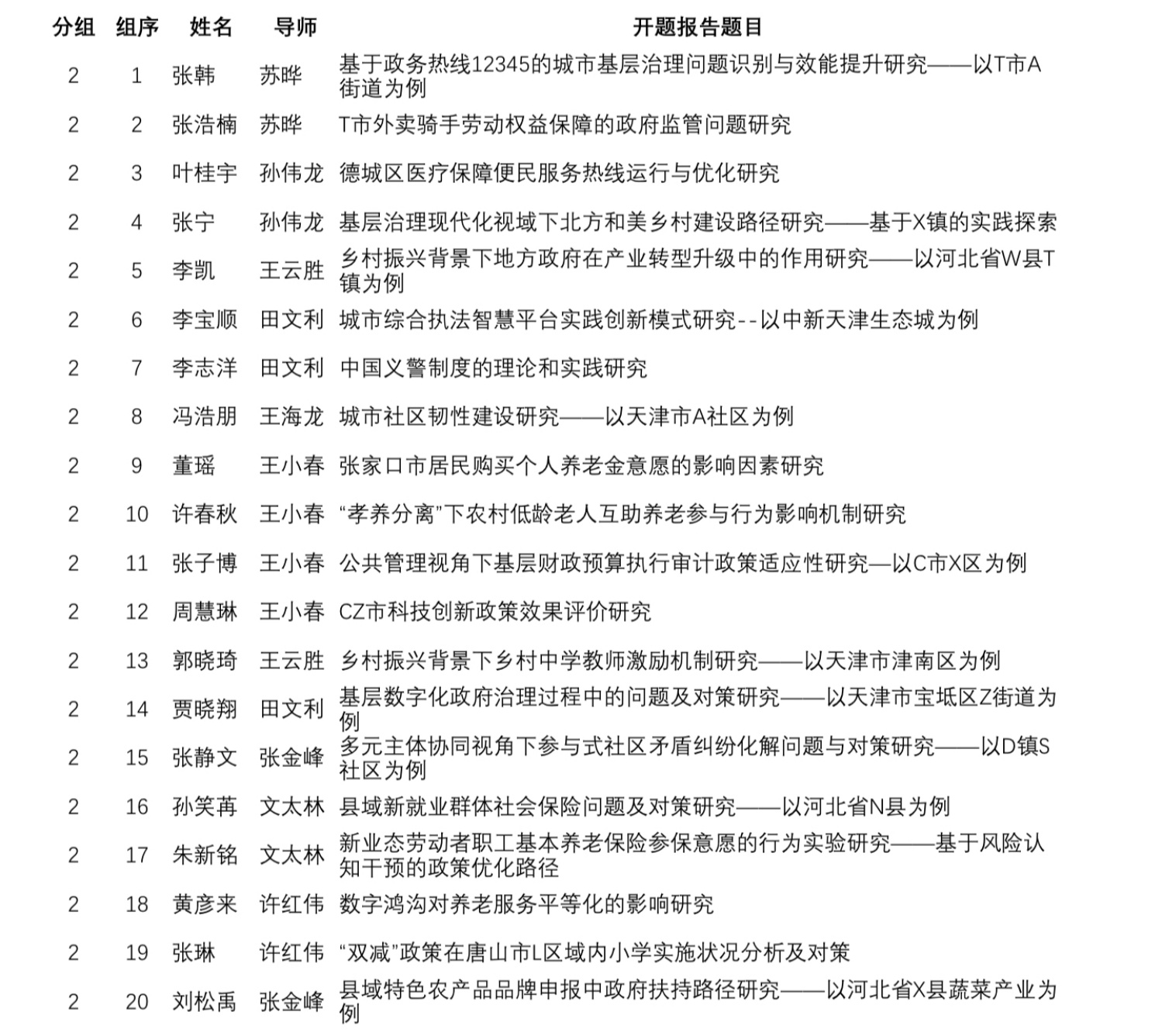 2024级MPA第一次开题报告日程安排