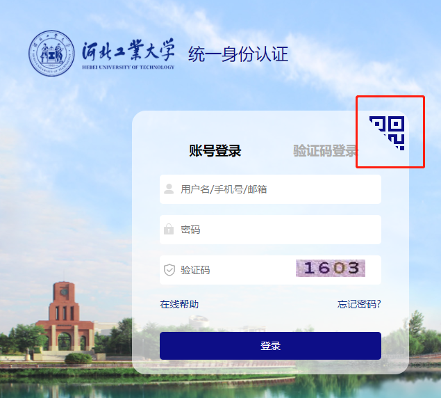 出现下面的登录界面,点击右上角的二维码,使用welink的扫一扫进行登录,校外同学记得要首先使用VPN登录校园网。