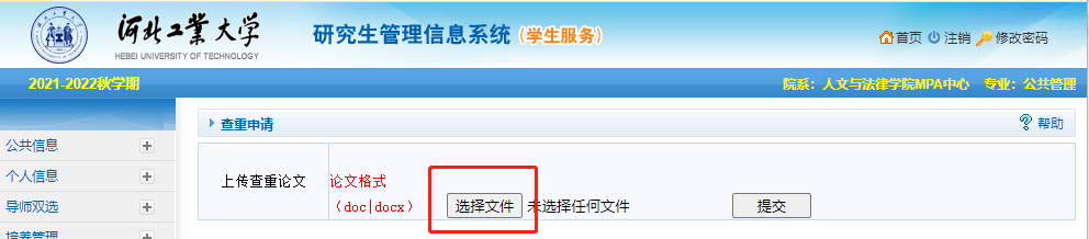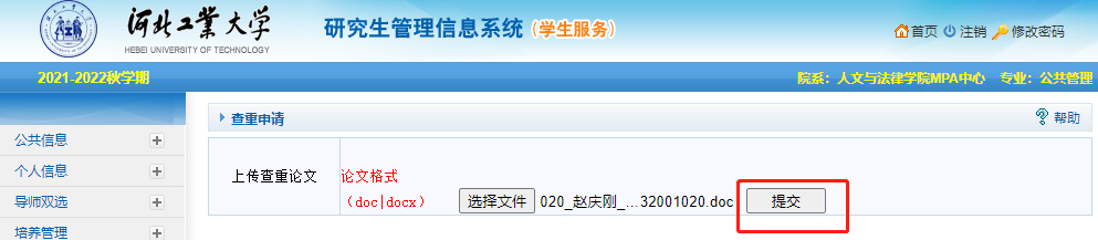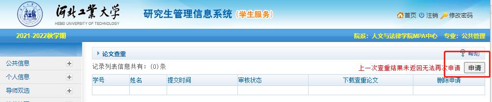 1.学生通过研究生管理信息系统提交论文,并向导师申请审核。